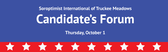 Soroptimist International of Truckee Meadows will host a Candidate’s Forum on October 1th from noon until 1:30 pm at the Atlantis Hotel Casino Spa.